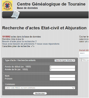 Le Centre Généalogique de Touraine aura le plaisir de vous accueillir sur son stand les samedi 13 et dimanche 14 de 10 h à 18 h