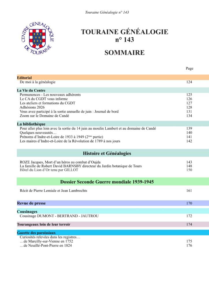(Pour consulter les sommaires des bulletins Touraine Généalogie qui ont été édités, cliquez sur le n° de bulletin de votre choix)